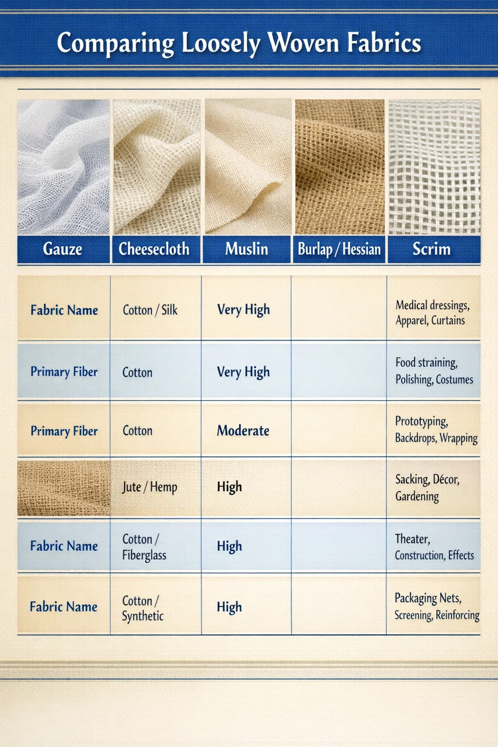 이 개방형 구조는 결함이 아니라 의도적인 엔지니어링 선택입니다. 느슨하게 짜여진 직물은 통기성, 가벼움, 유연성 및 많은 산업 응용 분야에서 여과 기능으로 인해 높이 평가됩니다. 어떤 원단에 어떤 이름이 적용되는지 정확히 이해하면 옷을 재봉할 때, 음식을 준비할 때, 인테리어를 장식할 때, 공예 작업을 할 때 올바른 소재를 선택하는 데 도움이 됩니다.